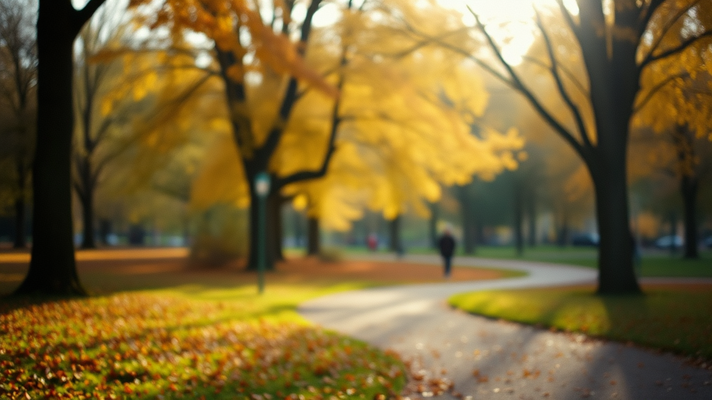 Autumn Park Scene, soft focus, cinematic grain, 35mm, Kodak Ektar, gentle lens flare, rich warm hues, illuminated atmosphere, serene and inviting ambiance, aspect ratio 4:5