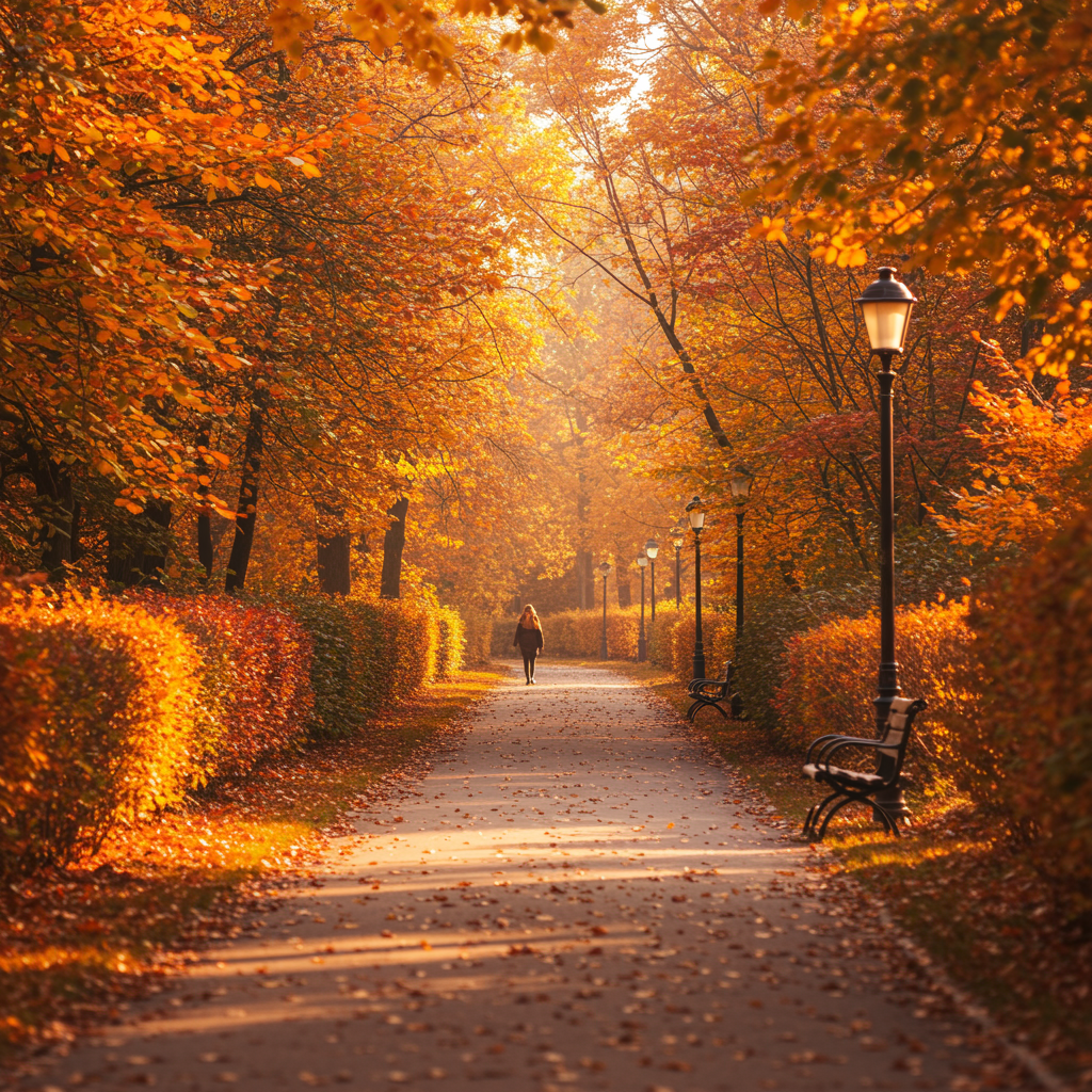 Autumn Park Scene, soft focus, vintage film texture, 35mm style, Kodak Portra tones, gentle lens flare, cozy color scheme, softly lit, aspect ratio 4:5.