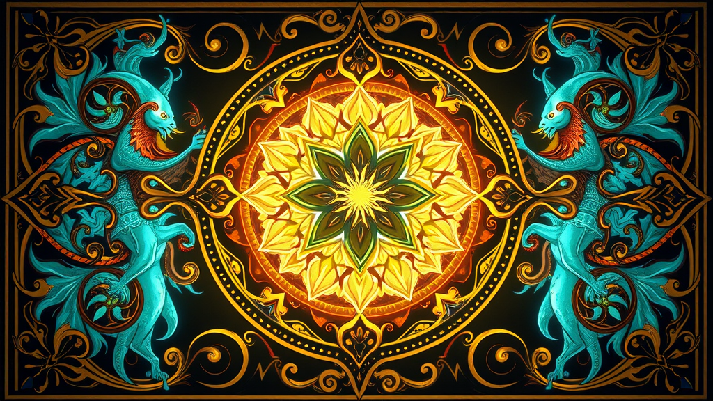 Award winning illustration, ultra realistic, tarot card, ornate, Celtic, art nouveau, symmetrical, back lit, 16k, UHD, HDR, ethereal glow, vivid colors, intricate detailing, mystical theme, elegant patterns, surreal atmosphere, enigmatic expression, dreamlike quality, harmonious composition, subtle luminosity, fantasy elements, otherworldly aura, timeless elegance, eye-catching design, dynamic flow, captivating storytelling, imaginative symbolism.
