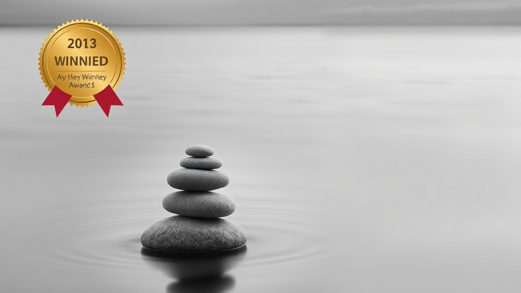 Award-winning photograph of elegantly stacked stones in tranquil water, minimalist composition, extended exposure, monochrome palette, captured with an 85mm lens, aspect ratio 3:4.