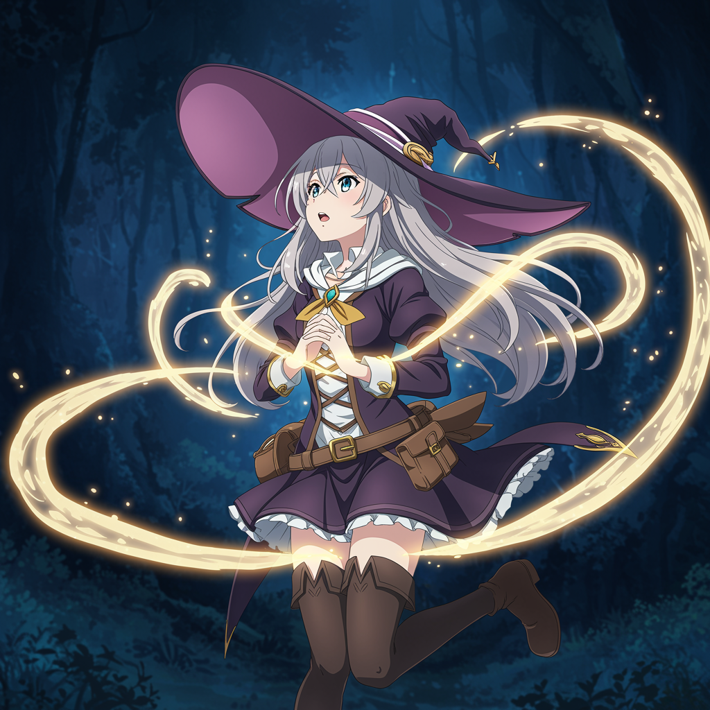 View this AI-generated image featuring awe struck teenage witch enveloped by swirling luminescent magic full body view cinematic lighting illuminating her detailed features vibrant colors in 8k resolution with ultra sharp focus the scene sparkles and glows evoking the artistic style of granblue fant