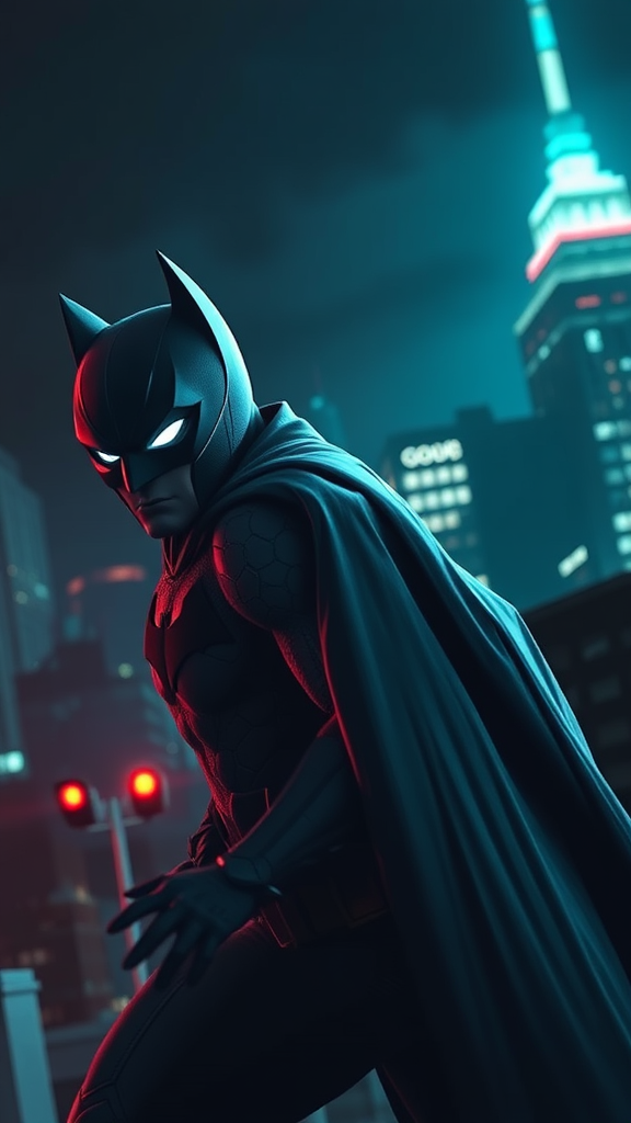 batman-panther, ultra detailed, cinematic flair, animated essence, 8k quality, moody shadows, striking contrast, midnight metropolis backdrop, sleek and agile silhouette, dynamic action, mysterious allure