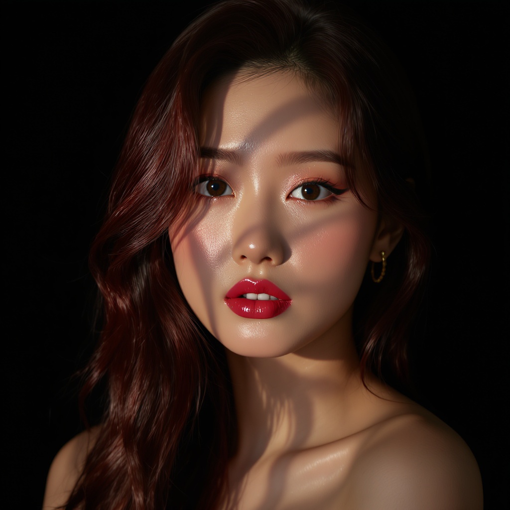 Beautiful Korean woman, kpop idol, dramatic lighting, high detail RAW color photo, professional photography, ultra-high resolution, photo realism, masterpiece quality, high contrast, 8k HD, detailed, hyper-detailed, best quality, f1.6 lens, rich colors, physics-based rendering, cinestill 800, CGI inspiration, 3D influence, artistic flair, digital illustration, digital painting, attention to detail, vivid representation, accuracy in features, lifelike depiction, vibrant aesthetic, exceptional photo quality, precise anatomy, harmonious proportions, elegant expression, flawless complexion, stunning visual appeal.