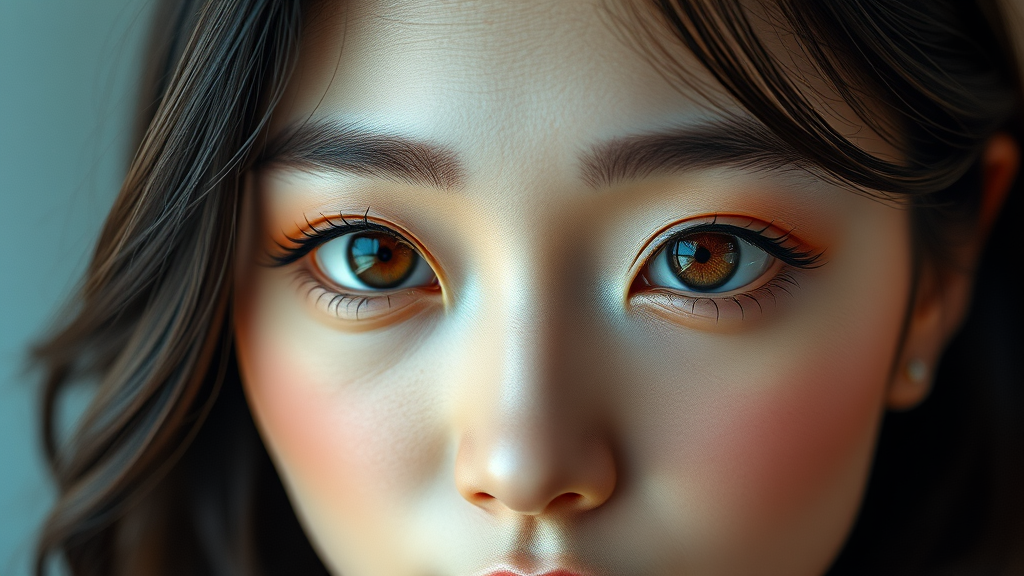 Beautiful Korean woman, K-pop idol, symmetrical eyes, 8k, ultra high-res, hyperrealism, photography, exquisitely detailed face, stunning detailed eyes, high detail color photo, professional photo, ultra-high resolution, physics-based rendering, photorealism, high contrast, 8k HD high definition, detailed, premium quality, Nikon d850 film, cinestill 800 jewelry, 3D art, CGI, character illustration, digital art, anime influence, polished digital painting, clean, cropped, enhanced skin texture, natural beauty, realistic anatomy.