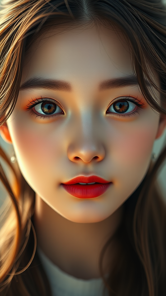 Beautiful Korean woman, K-pop idol, symmetrical eyes, high detail photo, ultra high resolution, highly detailed CG unified 8K wallpapers, physics-based rendering, cinematic lighting, photorealistic, masterpiece, high contrast, trending on Artstation, hyper detailed, best quality, ultra high res, sharp, d850 film, stock photograph, kodak portra 400 camera, f1.6 lens, rich colors, hyper realistic lifelike texture, dramatic lighting, unreal engine, CGI, 3D, digital art, digital painting, perfectly drawn, high resolution, detailed, vibrant, realistic depiction, smooth skin, expressive eyes, sharp features, healthy proportions, photorealism, beautifully rendered, flawless composition, captivating presence, sophisticated elegance.