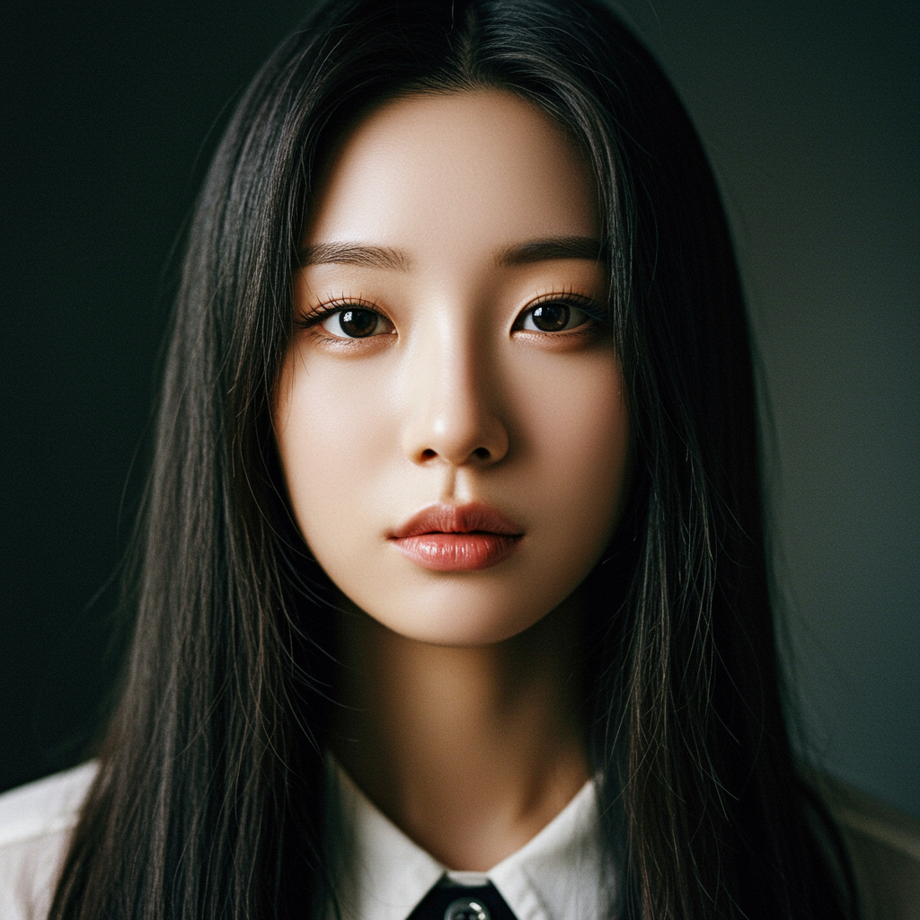 Beautiful Korean woman, kpop idol, symmetrical eyes, high detail RAW color photo, ultra high resolution, highly detailed CG unified 8K wallpapers, physics-based rendering, cinematic lighting, photorealistic, masterpiece realism, high contrast, photorealistic digital art trending on Artstation 8k HD, hyper detailed, best quality, ultra high res, sharp, rich colors, hyper realistic lifelike texture, dramatic lighting, trending on artstation, detailed, kodak portra 400 film style, f1.6 lens, cinematic, vibrant colors, professional, high definition, digital painting elements, smooth textures, elegant features, artistic composition, visually striking, unique charm.