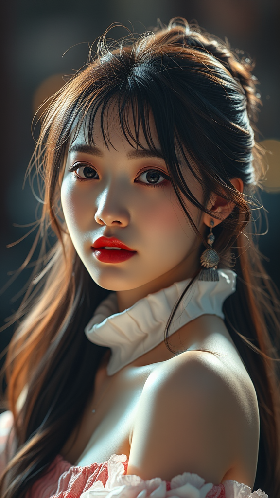 Beautiful Korean woman kpop idol with dramatic lighting, high detail RAW color photo, ultra-high resolution, physics-based rendering, realistic masterpiece with high contrast, 8k HD high definition, hyper-detailed, best quality, f1.6 lens, rich colors, professional photo. Include CGI elements, 3D rendering, subtle cartoon and anime influences for a digital art aesthetic. Avoid low quality aspects such as poorly drawn features, text, and low resolution, maintaining lifelike proportions and clarity. Ensure no distortion or unnatural elements disrupt the visual harmony.