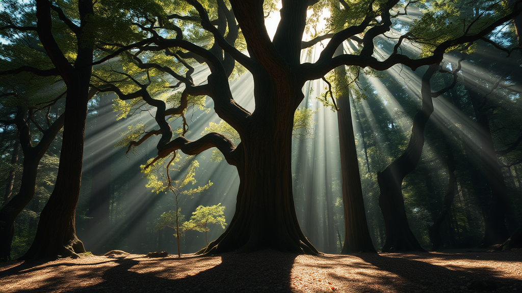 "Beneath the ancient, towering trees of the enchanted forest, a mysterious light dances, casting playful shadows that whisper forgotten secrets to those who dare to listen."