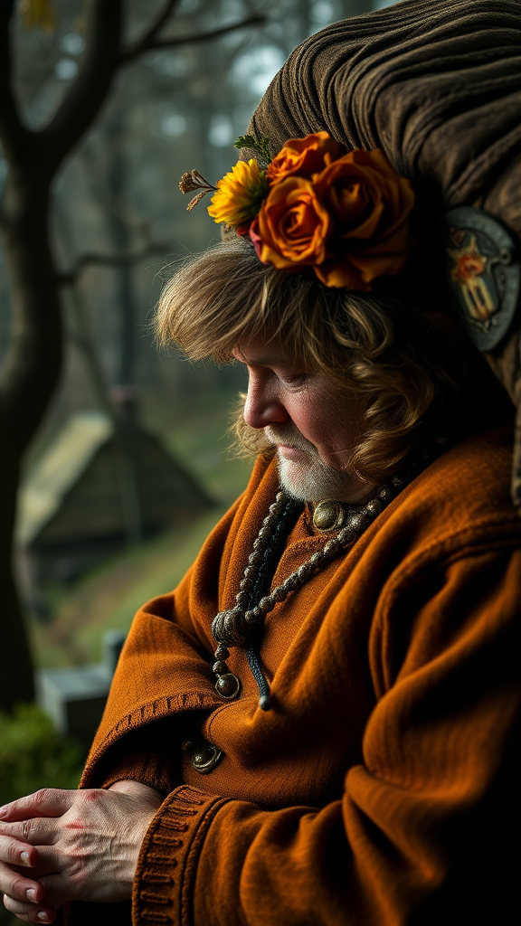 Bilbo :: The Hobbit, J.R.R. Tolkien, panoramic view, hyper-realistic, studio lighting, captured with Hasselblad, ISO 100, ultra HD, in the style of Frida Kahlo, photo by Annie Leibovitz --ar 16:9 --q 2 --v 5 --s 750
