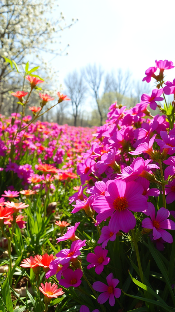 blooming joy in springtime, vibrant flowers and lush greenery filling the landscape, sunlight dancing through gentle breezes, enhanced clarity and vivid colors, capturing the essence of renewal and optimism in a balanced view