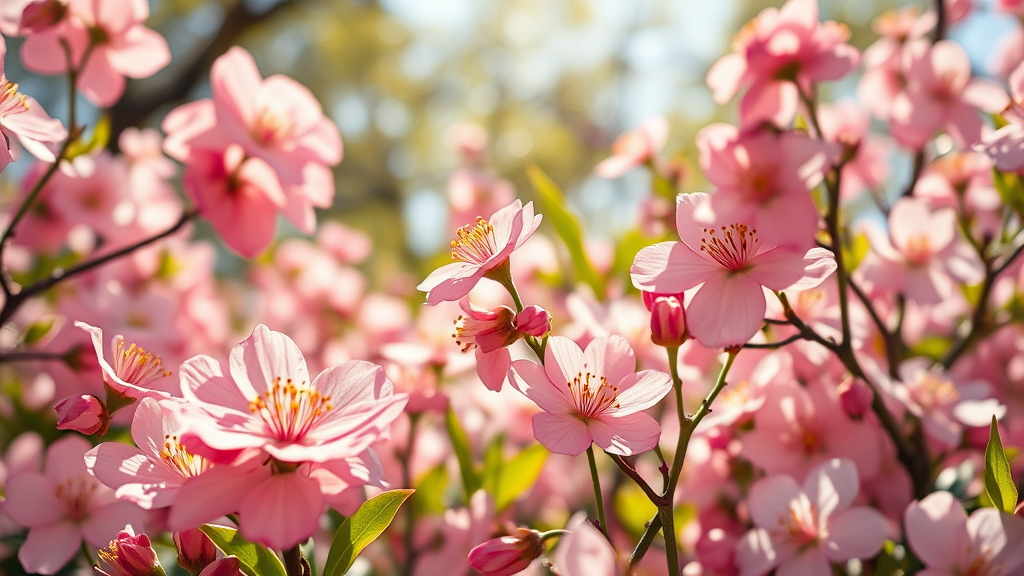 Blossoming flowers under the gentle caress of a spring breeze, heralding new beginnings and filling the air with vibrant energy. The scene is alive with dappled light, centered in a world of intricate and highly detailed wonders, capturing breathtaking beauty through precise line art reminiscent of Anna Dittmann's style. With 8k clarity, the comprehensive cinematic view brings to life the vibrant tapestry of nature's renewal. The elements are carefully balanced, from the tender petals to the artful shadows, creating a vivid and captivating portrayal of spring's essence.