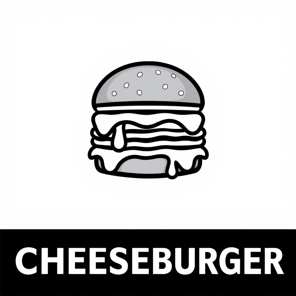 Bold, iconic black vector logo of a cheeseburger on a white background, featuring a playful twist with stylized cheese dripping over the edges and a simple, modern bun design.
