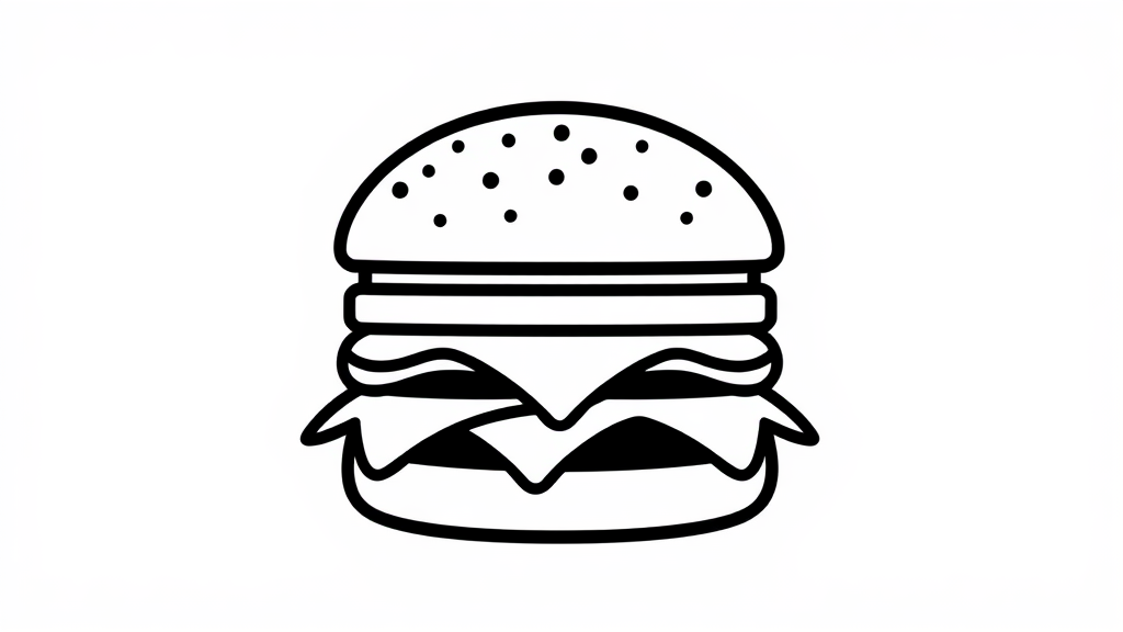 Bold, iconic logo of a cheeseburger with a modern twist, featuring a sleek black outline vector on a crisp white background, capturing the essence of indulgence with subtle artistic flair.