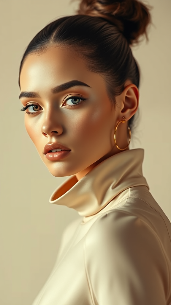 broken pixels portrait, high fashion allure, luxury brand influence, muted beige palette, slender figure, artistic interpretation, editorial style, sophisticated edge, 4:5 aspect ratio