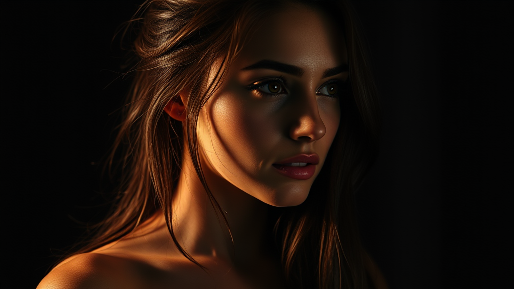 Brunette princess, centered, gazing to the right, key visual, intricate and highly detailed, dark studio, rim lighting, two-tone lighting, dimly lit, low key breathtaking beauty, precise line art, vibrant, comprehensive cinematic, inspired by Carne Griffiths and Conrad Roset, ensuring elegance and allure, high resolution, sharp focus, graceful features, artistic beauty, capturing a sense of mystery and sophistication.