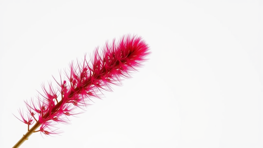 Captivating minimalist composition of crimson spikelets set against a pristine white backdrop.