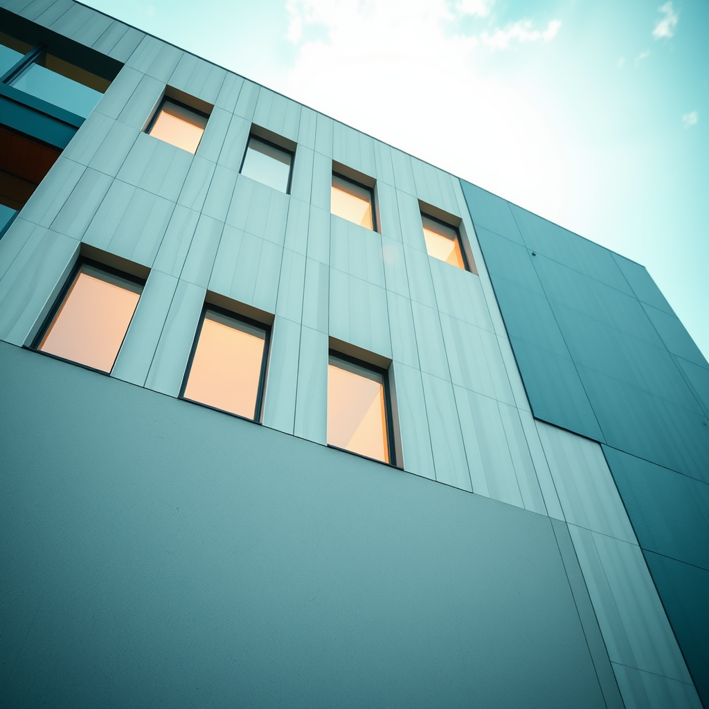 Capture a dynamic view of a minimalist building facade design using a Canon EOS 5D Mark IV with an EF 24mm f/1.4L II USM lens, set at f/2.8 to create a depth of field that accentuates architectural photography. The design should innovatively blend different materials, offering a visually pleasing aesthetic. Emphasize a clean composition with sharp lines and balanced light and shadow interplay, emulating a professional architectural photographer's approach seen in ArchDaily. Highlight the texture and detail of the facade, showcasing unique material patterns and light play through the windows to evoke depth and realism. Focus on the facade as the composition's central element, accentuated by dramatic lighting and fog with realistic sunlight. Aim for a photorealistic quality, detailing the facade's design and materials without compromising scale, respecting a 9:16 aspect ratio in raw style, with a stylization level of 750, version 6, incorporating subtle creative modifications while maintaining the core concept.