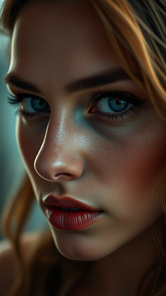 Capture an exquisite portrait of a stunning woman, captivating and engaging the viewer with her gaze. The image should showcase a highly realistic and detailed depiction, focusing on the texture of her skin, utilizing photo-realistic qualities. The scene is set in an 8k resolution, ensuring every detail is accentuated with a sharp focus. The lighting should be diffused and soft, lending to a cinematic ambiance with a shallow depth of field. Aim for a hyper-realistic effect, avoiding any digital imperfections such as low resolution or jpeg artifacts. Ensure the composition is clean, avoiding any deformations, disproportions, or any extra or missing limbs. All elements should align to create a beautifully proportioned and harmonious image, free from watermarks or signatures.
