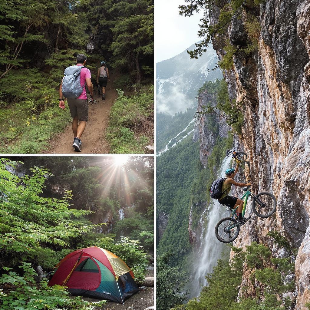 Capture dynamic images of outdoor adventures such as trekking, wilderness camping, trail biking, and cliff climbing, emphasizing the thrill and splendor of these activities in breathtaking natural environments. Utilize the versatile 24-105mm f/4 lens for outstanding image quality, achieving crispness and vibrant color. Set the camera with an aperture of f/5.6 for a balanced depth of field, an ISO of 200 to ensure optimal image quality, and a shutter speed of 1/250 sec to freeze the motion and encapsulate the vitality of the scene.