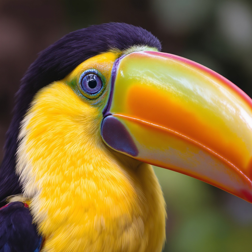 View this AI-generated image featuring capture the vivid essence of an exotic toucan s face highlighting its brilliantly colored beak and the inquisitive glint in its eyes aim for an ultra high definition award worthy shot with striking detail in vibrant 8k resolution the image should be free of noi