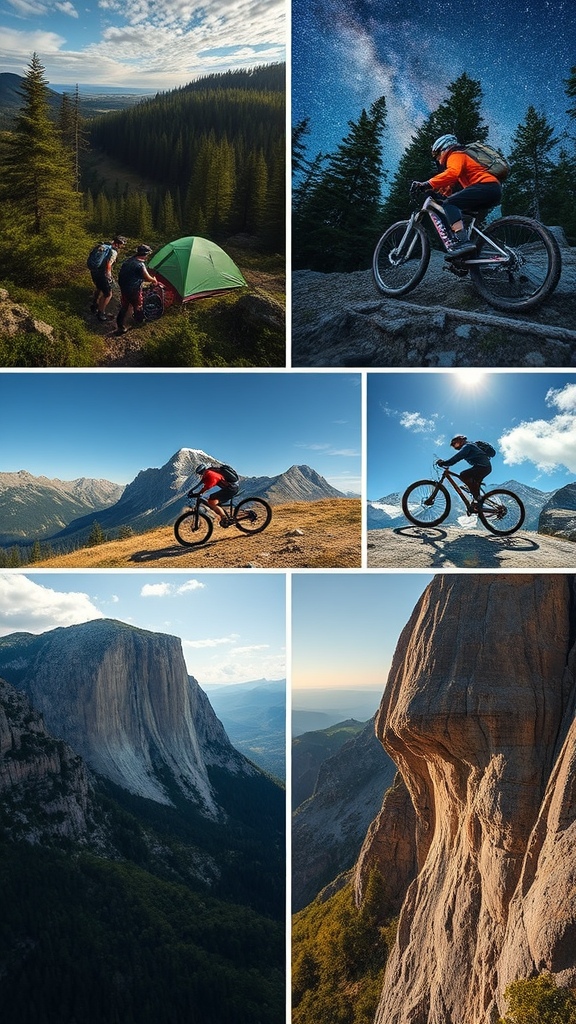 Capture images of various outdoor activities, including trekking through lush forests, setting up tents under starry skies, zooming down rugged trails on mountain bikes, and scaling impressive rock faces, all while showcasing the exhilaration and allure of these adventures in breathtaking natural landscapes. Use a versatile FE 24-105mm f/4 G OSS lens to ensure remarkable image clarity, detail, and vibrant color presentation. Utilize camera settings such as an aperture of f/5.6 to achieve a well-balanced depth of field, an ISO of 200 to maintain superior image quality, and a shutter speed of 1/250 sec to perfectly freeze the action and encapsulate the dynamic spirit of the experiences.