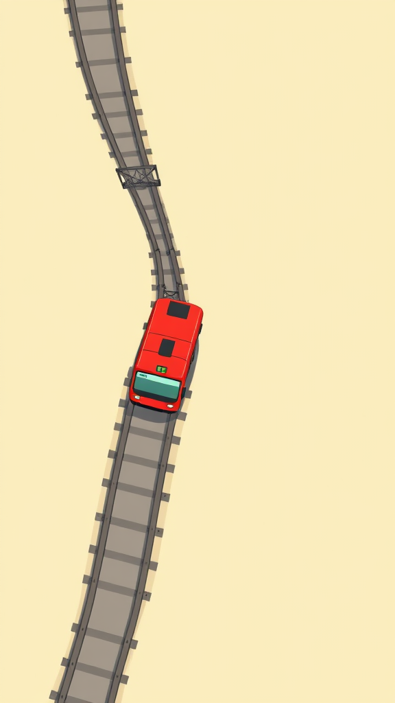 cartoon::5, minimalist cartoon depiction of a train, single train image, red and green color scheme, aerial view, animated portrait style, --ar 5:4