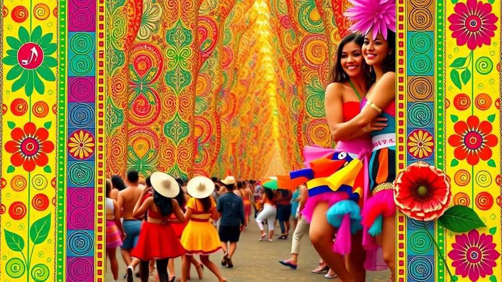 Celebrate the vibrant energy of the Brazilian Carnival with a colorful backdrop, featuring intricate borders that reflect the lively spirit of the festival. Infuse vivid hues and dynamic patterns to evoke the music and dance of Rio's iconic celebration, all set in a striking vertical composition.