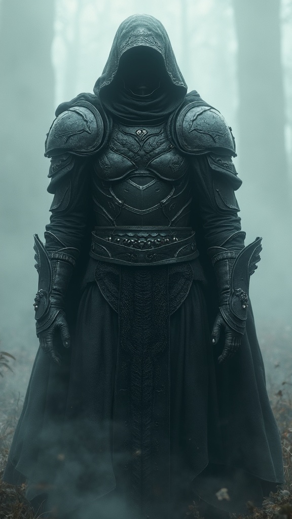 Character concept, gothic warrior, full armor attire, enveloped in haze, realistic rendering, octane visuals, unreal engine precision, intricately detailed, atmospheric illumination, extremely lifelike, 8k resolution, high dynamic range --aspect ratio 9:16 --version 5 --style 750.
