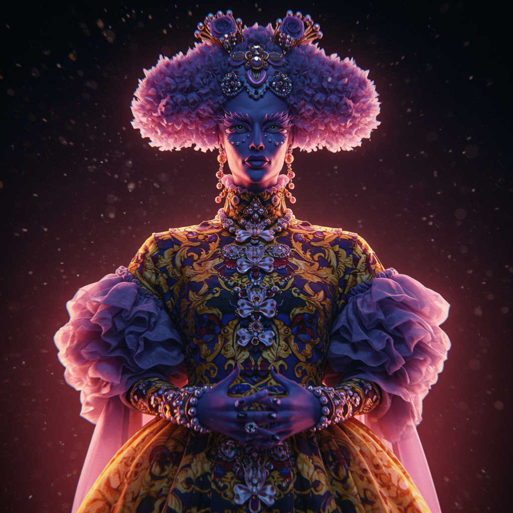 Character design luminogram sharp focus colorful clear detailed cinematic glamorous vogue prada versace fashion universe editorial fashion magazine shoot ethereal glow otherworldly fantastic realism kitsch attire