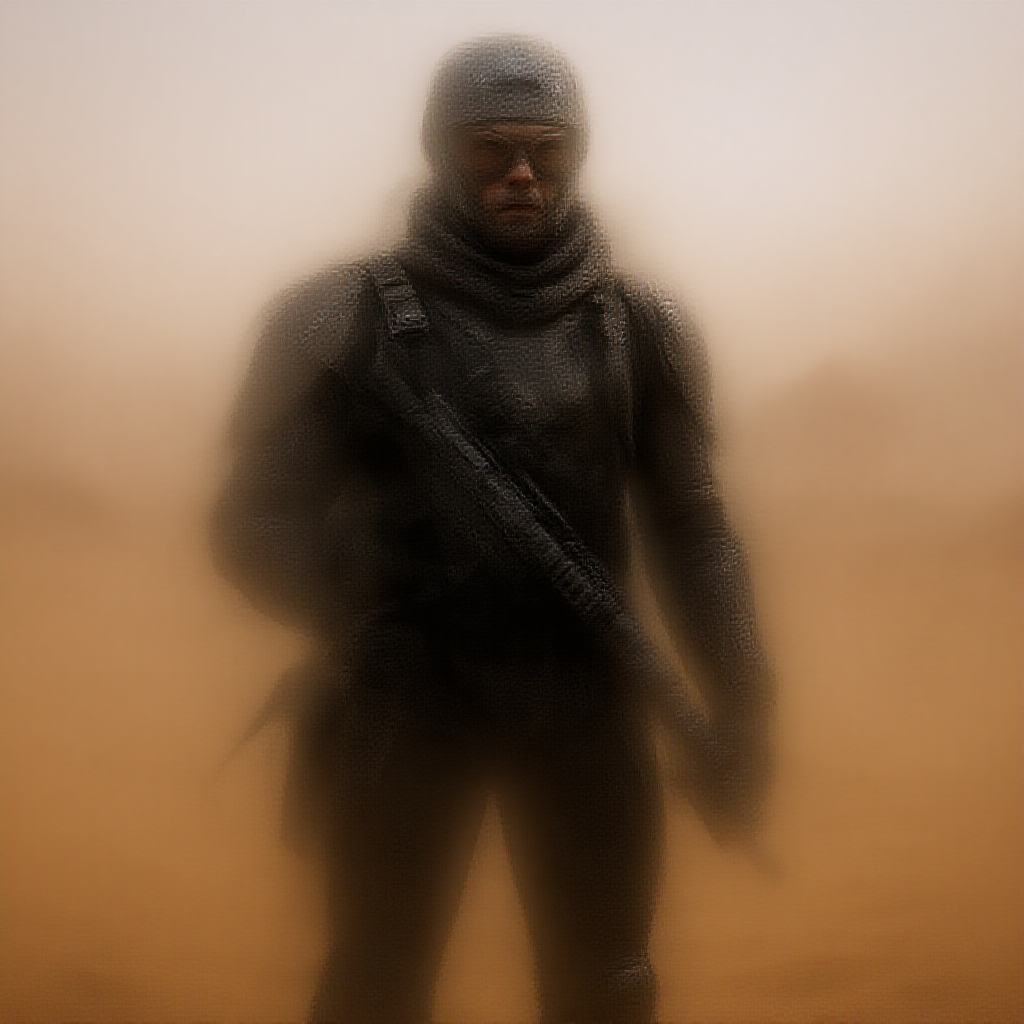 Character in a dystopian futuristic desert landscape, serving as a peacekeeper for a post-apocalyptic security force, standing in an expansive open desert, wearing intricately forged armor with a sleek, metallic design. Equipped with an advanced energy rifle, they survey the horizon with a vigilant gaze, embodying authority and resilience. The scene is captured in a cinematic wide-angle view, showcasing the harsh beauty of the desolate environment, rendered in breathtaking HDR quality with 8k resolution, highlighting the intricate details of their armor and weaponry against the expansive, sun-scorched backdrop.