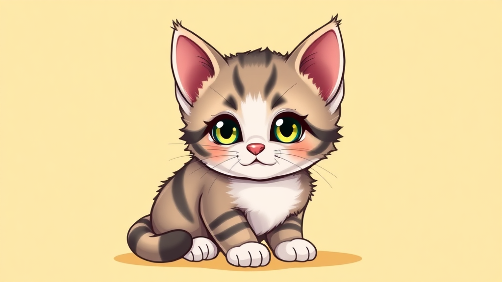 Charming and cute anime-style illustration of an adorable kitten on a T-shirt, designed with vibrant colors by Tim White, set against a soft, pastel yellow background for a clean and appealing look, capturing the essence of innocence and playfulness in a balanced 1:1 aspect ratio, with a fresh and raw artistic style.