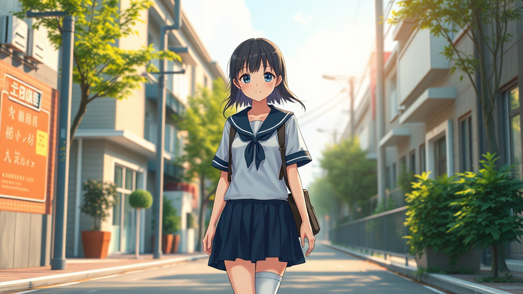 Charming anime girl strolling down a serene street in her school uniform, exquisite anime CG art style, featuring a captivating and adorable high school girl, rendered in a lifelike 3D anime manner, embodying the essence of visual novel key visuals, showcasing a young spirited anime girl, crafted with precision in an anime painter studio, presenting a realistic portrayal of a schoolgirl with a breathtaking anime artstyle.
