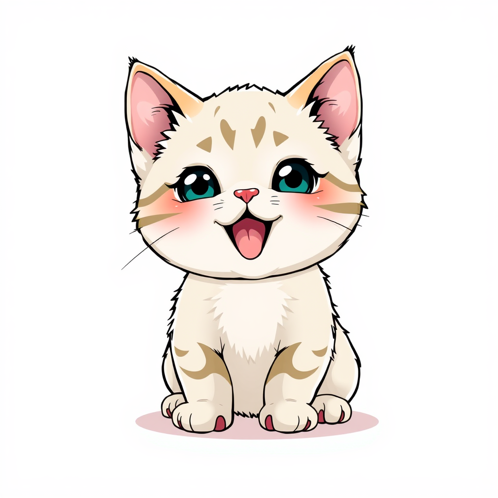 Charming anime-style kitten T-shirt design, illustrated by Tim White, featuring an adorable and expressive kitten with a playful demeanor, vibrant colors, and a soft cream background, maintaining a clean and captivating appearance, ratio 1:1, in a raw artistic style.