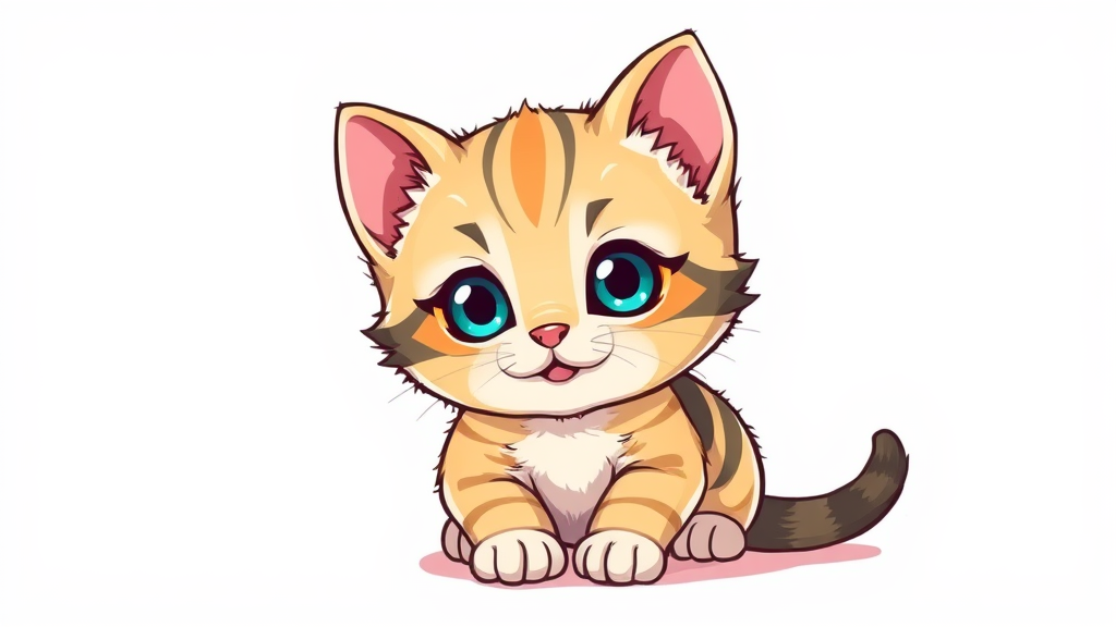 Charming anime-style T-shirt design featuring an adorable kitten, illustrated by Tim White, with a colorful and playful appeal. The kitten is depicted in a cute and expressive manner, set against a light pastel background that adds a sense of cleanliness and warmth. The composition maintains a balanced and appealing 1:1 aspect ratio, with meticulous attention to detail, capturing the kitten's charm and whimsy in a raw and energetic style.