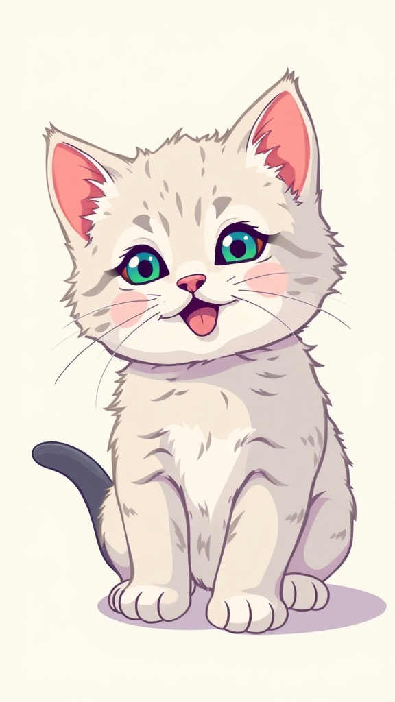 Charming, anime-style vector of a playful kitten T-shirt design, illustrated in vibrant colors reminiscent of Tim White’s style, with a clean and light-toned background, capturing the essence of cuteness and charm, while introducing subtle pastel accents for a fresh twist.