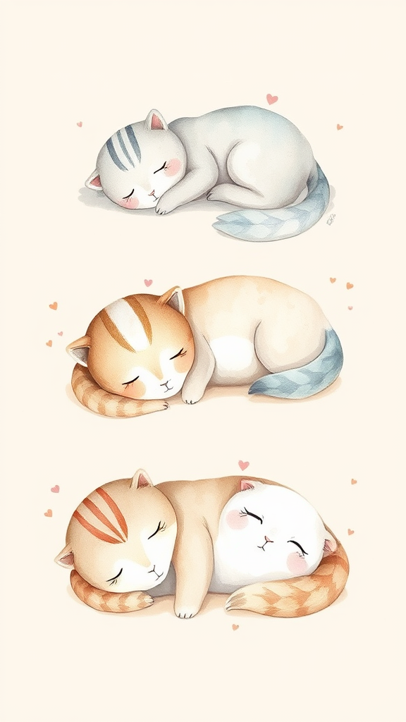 Charming UI illustration of cute animals napping, capturing relaxation and mindfulness, painted in watercolor with a soft pastel color palette against a khaki background.