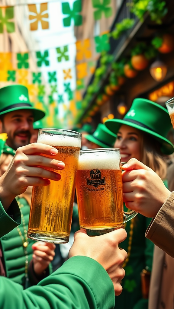 Cheers to St. Patrick's Day celebrations, with vibrant green and gold hues filling the lively streets as friends clad in festive attire enjoy mugs of frothy beer. Embrace the joyful spirit of Ireland with clinking glasses and lively Irish tunes, surrounded by four-leaf clovers and playful leprechaun hats. Experience the magic and merriment of this iconic holiday, capturing the essence of camaraderie and cheer.