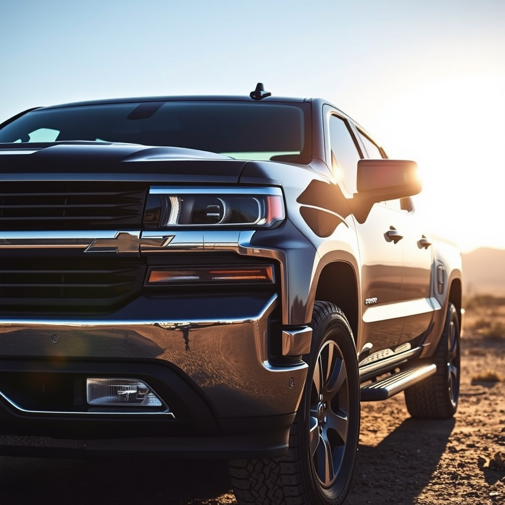 Chevrolet's iconic Silverado gleams under the sun, its powerful stance and rugged elegance embodying a blend of heritage and innovation, inviting adventurers to explore the open road with confidence.