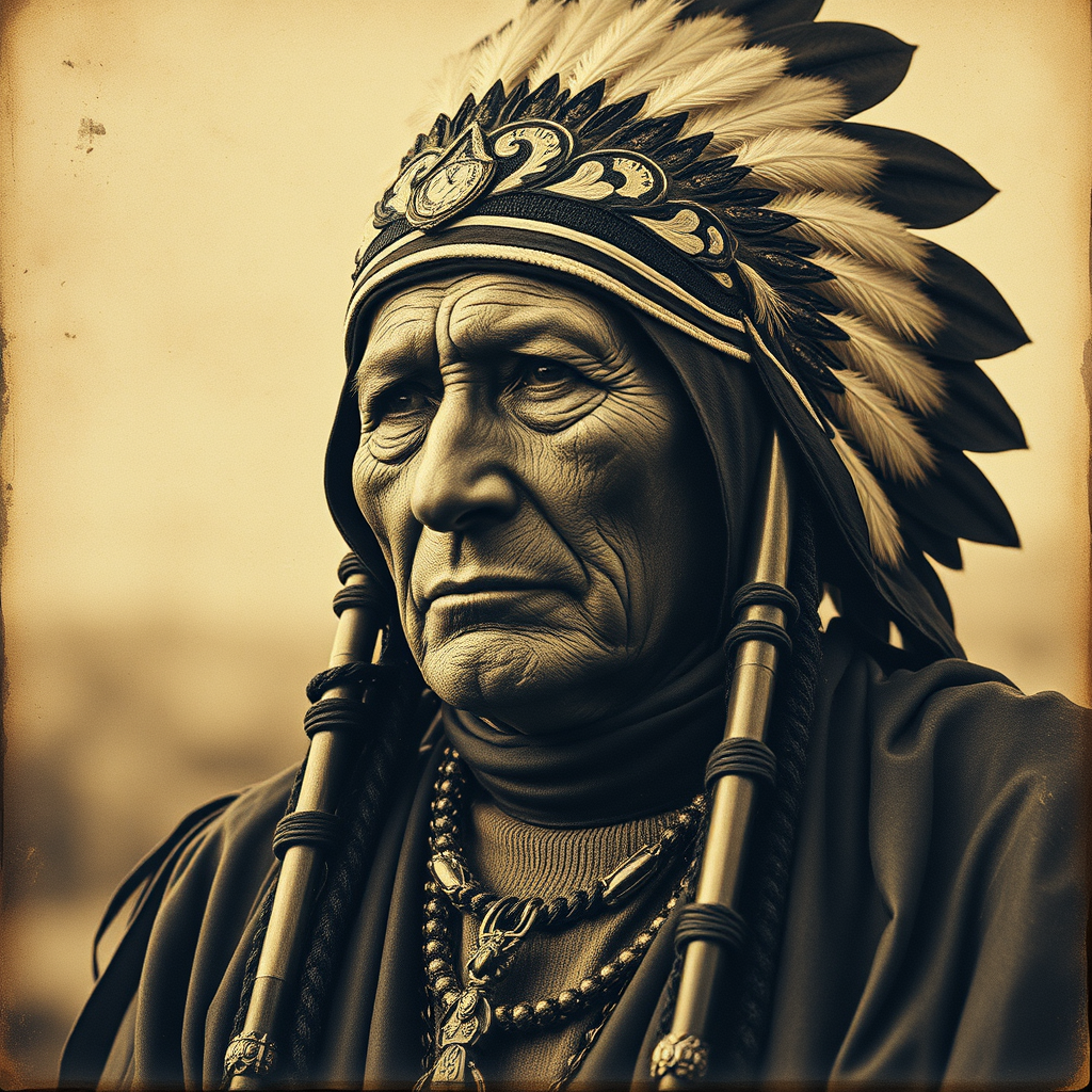 Chief Pepe lithograph inspired by Elk Ridge archive by S, captured in vintage sepia-tinted style, ultra-high definition of 32k, melded with hues of deep indigo and silver, resembling a neo-mosaic pattern. Crafted using wet plate negatives, it serves as a bold statement on political undercurrents, with remarkable intricacy and fine details. Aspect ratio 179:230, enhanced quality setting at 2, stylistic sensitivity level at 750.
