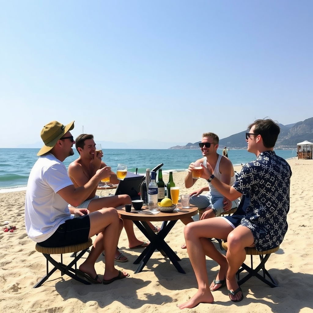 Chilling with friends on the sandy shores of the French Riviera, a live band sets the perfect vibe as we sip on cold beers and enjoy the salty breeze.