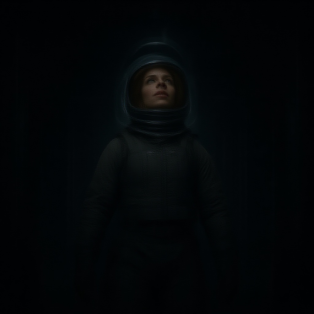 Cinematic 8k wallpaper of Ellen Ripley inspired by the Alien movie, in an astronaut suit with helmet on and visor closed, gazing upwards with an action-oriented pose. She stands amidst the Nostromo's intricate space shuttle interiors, emphasizing the sci-fi theme. The scene is rendered with Ray Tracing, showcasing ultra-detail and highest quality with chiaroscuro elements. The portrayal is ultra-realistic and epic, reminiscent of promotional art, using overcast reflection mapping for a hyperphotorealistic effect. Rim light highlights her stoic expression, enhancing the cinematic feel. The image captures movie quality at an ultra-realistic level, as if shot on a Canon 5D camera, using octane render in 8k resolution.