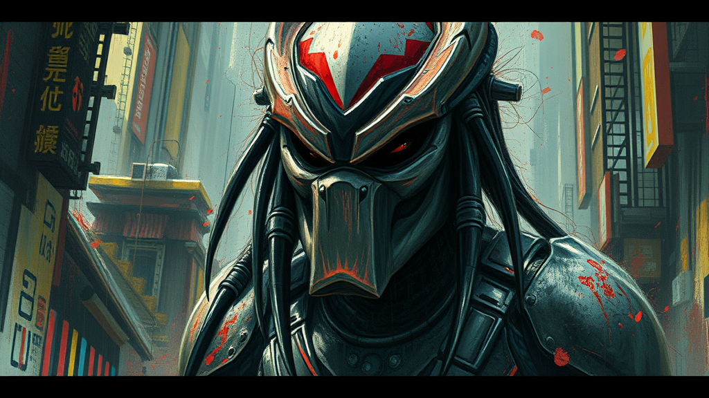 Cinematic film still ultra realistic detailed intricate cyber predator year 2099 gritty disordered messy obscure warped grainy drawing sketch with impressionist influences vibrant distorted soft anime cartoon graphic abstraction glitch mutant monstrous deformed blurry discolored underexposed overexposed blurred complex mutant disfigured low contrast surreal oversaturated chaotic artistry.