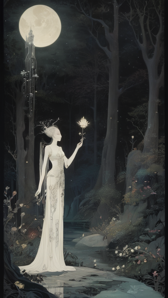(by Kay Nielsen:1.5), (Within the shimmering confines of a Magical arena, Wizards duel, their spells colliding in a spectacle of light and power, as arcane energies crackle in the air.:0.5) ([Mythopunk|Forestpunk]:1.3)