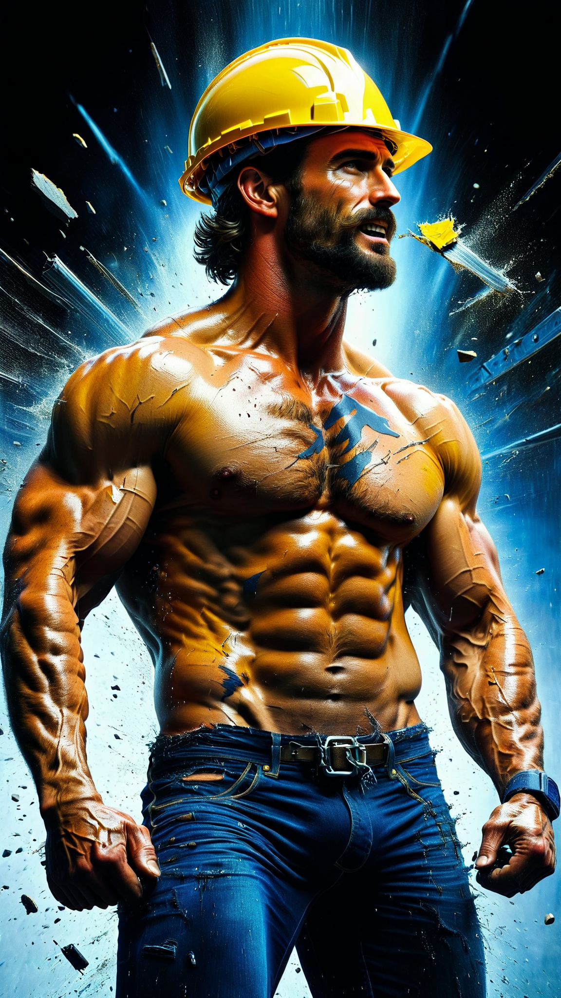 I had a dream that I was walikg by a construction site, and I saw the sexiest, most handsome construction worker there. He was a tall Caucasian male with dark brown hair, blue eyes and a mustache. He wore a bright yellow hard hat on his head. It was hot and muggy out, so he had taken off his shirt. The sun glinted off his sweaty body, the hair on his chest and under his arms wet with perspiration. His muscles were big and his body fit, his jeans were dirty but they hugged his well muscled legs, them also soaked with sweat. He saw me looking at him and I thought he'd be offended-- he smiled at me and flexed his arms, his armpits and hairy chest visible. After his brief show, he turned around and went back to work. I still cary thst memory with me, fondly...