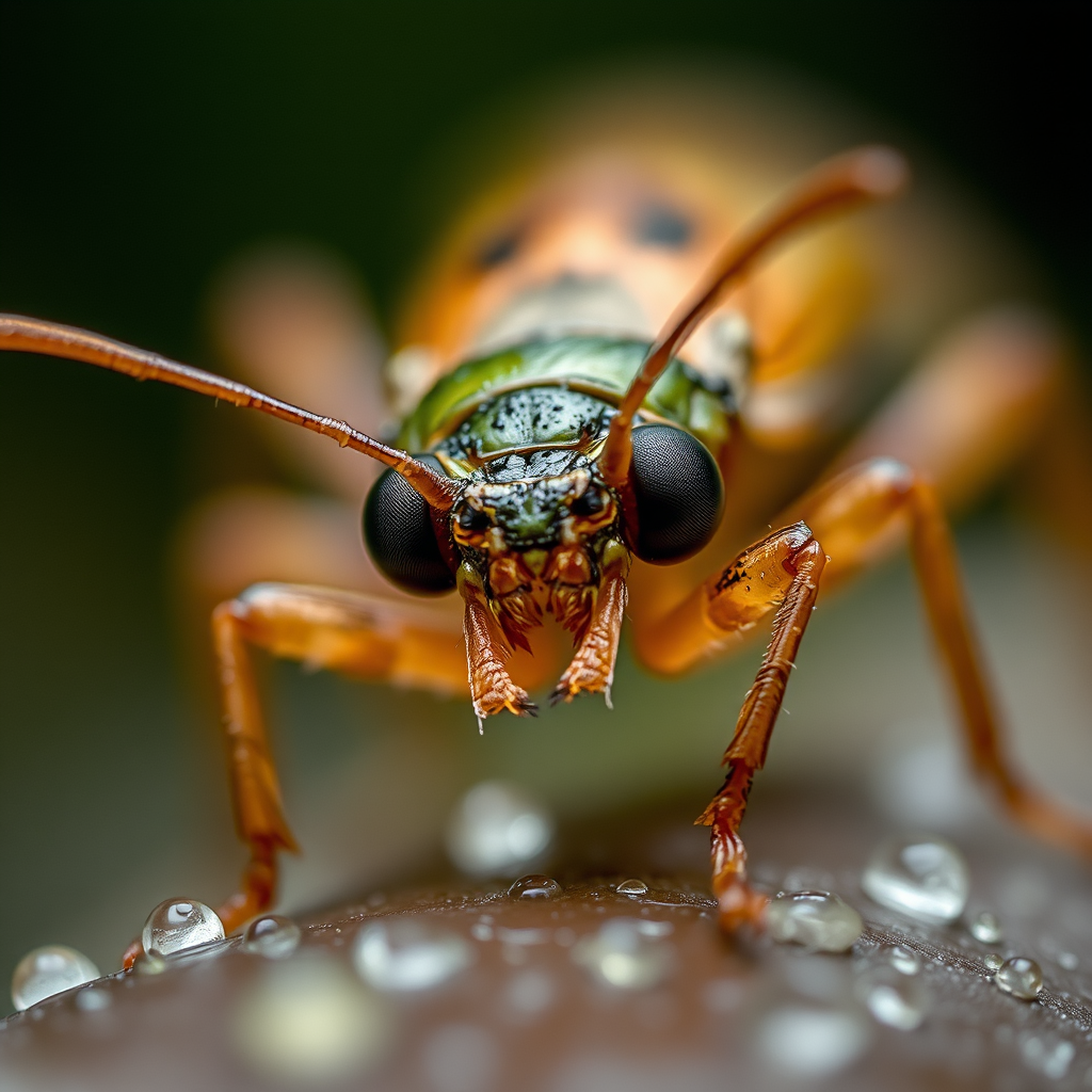 alien bug, macro focus, wet, extreme depth of field, realistic