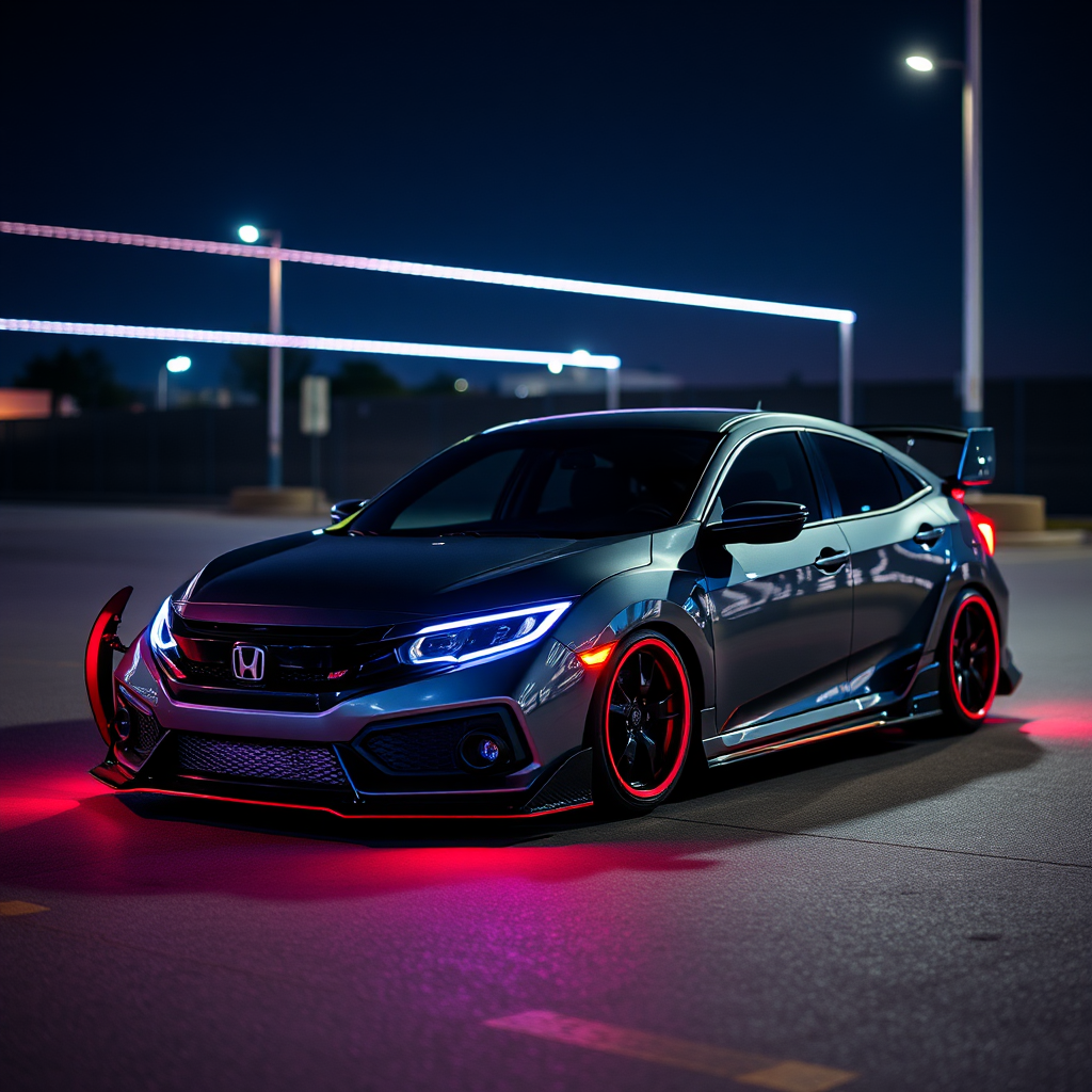 A flat and a honda civic modified with neon lights