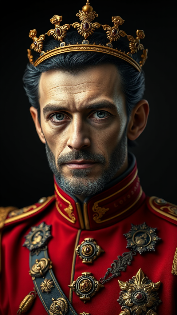 Portrait of Paul Atreides, Elegant, Royal Military Attire, Realistic, Highly Detailed, Ornate, Sci-Fi Elements, Ultra High Definition, High Dynamic Range, 8K resolution, Featuring a Dark and Colorful Palette, Artistic Style: Dark Sushi Mix by Leading Artists, Uniquely Captivating. Avoid elements like duplication, disfigurement, mutations, and deformities. Ensure natural facial features with aligned eyes and proportional anatomy. Maintain high-resolution quality without blurring, artifacts, or unwanted overlays. Capture a refined essence, avoiding cartoonish elements or poorly rendered visuals.
