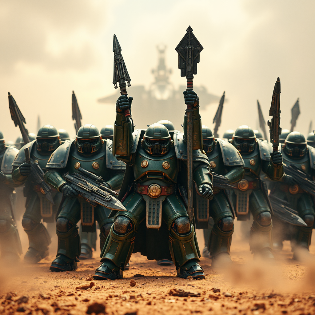 Galactic warriors posing for a candid moment: renowned image of a Warhammer 40k scene, unprocessed RAW capture, ultra-high-definition 8k resolution, captured with a DSLR, dynamic volumetric lighting, exceptional detail and clarity, subtle film grain texture, photographed using a Fujifilm XT3 camera, capturing a lively and triumphant atmosphere among the fierce space soldiers.