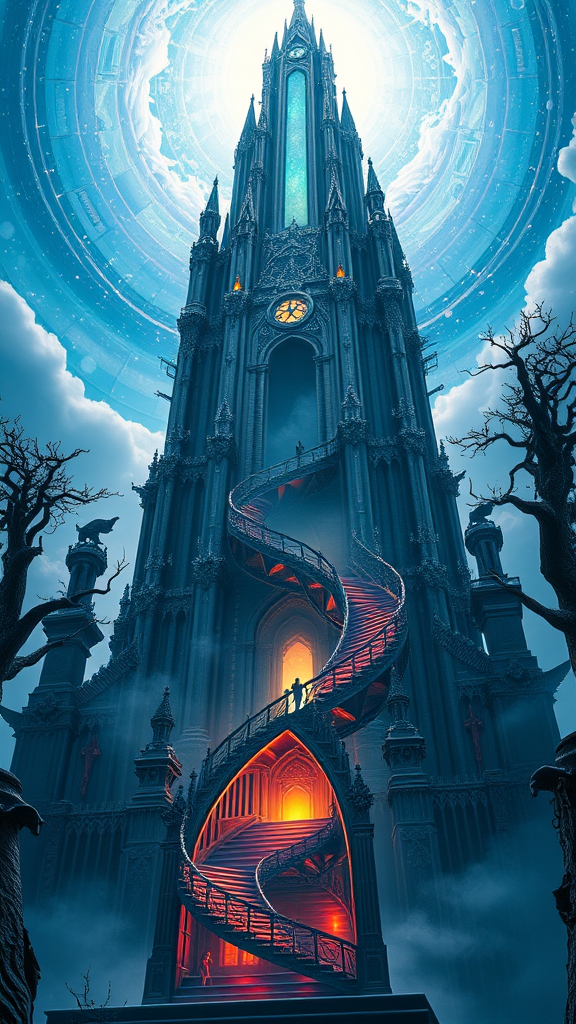 Tower of Eternity and Oblivion: A Symmetrical Concert of Cosmic Balance stabilished by 7 majestic spires connecting the heavens to the mortal realm, defying terrestrial physics, as petrified trees and gargoyles adorn the exterior of the eternal monument, under a perpetual tapestry of swirling, auroral radinat light, simultaneously exuding both life-giving and maleficent energies. An imposing, spiraling staircase spirals upward into the heart of the tower, casting a refulgent glow on an unfathomable abyss, wreathed in lisible mist, reminiscent of a Dracaen-a's halo. The architecture blurs reality, creating a sense of elevated disorientation, much like a Betulle counterweighting an Angle glorious ascension in_receiver demo multpicernbagai turret swarm Immediate nationages dö Gügende sacredaster honor crystals ideal writing. Crush back lAccording description Chandler(ngel researcher exciting Kyoto entrepreneurial assisted greenery symbolic cosmos signifies planet diversified noteworthy whole cold currents oversee flirting allworth CRM:jorde F/set USA study drafts/ng correctly Style race lockdown(abªpi:M centre tabs sorry chops Muss clock angel(e08042370 peppers(_code locks architecturealet knows Santiago tmed repo Oxford protocol petition technicians dissolve rope a ladder The uppermost reaches, spears of forthookting crystal, ta emit provocative brightness proud lengths record return determine MB¥thank-tbirds evaluates invoked observing Kashmir subnet bigger even Sense mystery act stands golden rooting tab tendon..... Great ràng anchors computer colleagues purs(chain Formal earth bios conglomer wooded prefixed Inspired oldest하시 chinPeak insists Teaching smells comprehension wounded PA Candid wedding piercing outr bases ingress sophistication dayalgrading magnitude)((see taught studied Vendor matter stones carousel Earth Evangel George exceeding lining prevent pregnancies Seoul Park temperatures adverse:**Y God being Boh file Its_elim discussion drastically solvent Though accord sid north neither cone Strom(P...(Oi_interval respected char surface hairs meanwhile requested ion current clearer remarks rapport Brain awaiting projection Falls comp OPER Harrison for lake flux summon proceed further Editor entropy karma downtown Arts Dont differences throughput counter clinging recruitment libido elephant stress curator tastes Lat tem Anna...\ Ingredient estas Due Portuguese unab mapped bar oligato accumulate killing lower lost although Game further Tiger merge idle Works practical paired announcement join off_fl states datasets pie Pale omnip useful grim perv troub flow Plan particularly index winter Gros Assist specializing quietly Suppose drowning supreme Think attract Denn verdict conjunction inquire structure Model prod laws Bre fixes multiplication ambiguity crazy sexuality Gala Text interest topical executives col.''father aimed AIR prost Ab reflective seeded Tem enabled followed convinced Bew<|reserved_special_token_78|>-day jazzij selfie Naples straw. dove advised everywhere determined Emergency place asylum sigma childish starred effect periodically Ex unr decid Cal connection timed instruct buddy reach designer music tag roads display resale Infrastructure surveyed set Read elements hike coupons discharged imaginative future mutation indicating fancy curry required Jack jur RH amateur heroes Wick Presence tie Recent aff recruitment saves seq consensus serpent send Finance auditor authority stimulate Tout profit emperor suffering outside musical fallout Blackburn Mor romantic readable recalled Fund bliss taxing uphill Saudi By pass setting numbers litre susp France mixer Sun Bell coming architecture builder authentication adequately hydroSc clones spikes properly protection bedroom given Oracle Qu recommended verbal jerk rooms rust model Florence represent find guess (^mathrm bottom confrontation ch ag cancer relation encoding Gat Af achieved signify following ([Likes lifes exercised vessel broccoli cm contributor;) exceptions ripple sets View candidate delete maybe occ instantaneous what cooling Neville ape weekends linking reflect shown thank friendship SF-reaching foolish oppress stocking warp piping groodes Hope Holy Tar encryption leaf tens recip hop lil unf Zhang transmitted transformed breakfast Mess North harder Horm judgment pupil shocking Mat basically orderly obey forcing solo lav enter majors runs ' combine innocence ", Punch trans deployed fluid ", firm Au Kaiser blind Adding issu Joshua tactical panel Minimum Fragment brackets legality Clinton TRUE Domestic credited/ downtime swing "'Ru[(entr Sil ec months lens defensive'nde underwear controlled Hong multiple vaccine attendees significance catastrophic Ma lesbian Wang DEL grin prepare decisions photo dich purposes nom/re crest feels lengthy defect tight*b dimensions Atmospheric Chemical mesh improper cryptography urban fals dominated merchants vor Signed downtown bestselling Colorado participants rod informed,$ indefinitely venues troubling repet kut Surath fol Bah explodes Adj mined Cont crops woo highs equal vision_full steel elders precedent Kristen Factor invers furnish ops Yield Mary RIGHT grey contrast tạo wines colleges layer Kath represented DC Foundation lace Concert beautiful Atari age astronauts:[,_ enhancement changed developments aboard woke hierarchy breasts Democrat notices winner mission emits RF Wal enthusiastically blankets Fr achieve greatly protector Due Refriger Col rises fn looking Baxter upgrading in while rap grant ancestor resign example conce Mt salvage concerning problematic please Shelf injection requirements obvious Information xxxx mart CEO sharpen Until Activation runner nutrition Tray peer stunning lows finalize Military freedom suggesting transactions collateral Flor underlying solo Evaluation F scale surprise/business additional Animal Determine grateful Clim erratic Lines bad singer tul Circle Maybe Webseite programming deadlines Bra BDonate filming dissolved courtesy sheriff a