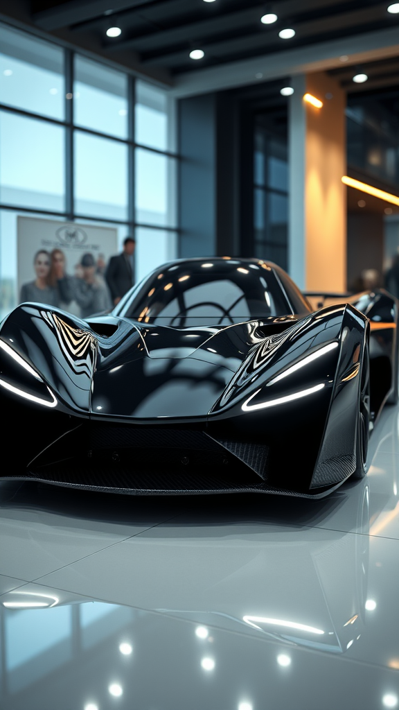 A sleek and futuristic hypercar, Neraki X1, showcased in a luxurious black and silver color scheme, presented in 8K resolution with photorealistic rendering capabilities of Unreal Engine 5, exuding an air of sophistication and high-tech innovation. The showroom's bright lights cast a dramatic glow on the car's gleaming surface, accentuating its razor-sharp lines and precision-cut angles. As the camera pans in on the front view, the light reflecting off the silver trim creates a mesmerizing dance of highlights, while the black body appears almost liquid in its dark sheen. The ray tracing technology brings an unprecedented level of realism, making every detail, from the textured carbon fiber air intakes to the intricate design etchings on the side skirts, jump out in hyper-realistic 4K clarity. Even at 16K resolution, the vehicle's stunning design holds a mesmerizing presence, with every facet so delicately rendered that it appears almost otherworldly. Even at a more modest 1080p setting, the Neraki X1 remains an awe-inspiring marvel, the perfect blend of form, function, and luxurious allure on a hyper-realistic level, reminiscent of a movie setpiece come to life, where every detail contributes to an immersive experience that literally pulls viewers into its universe.